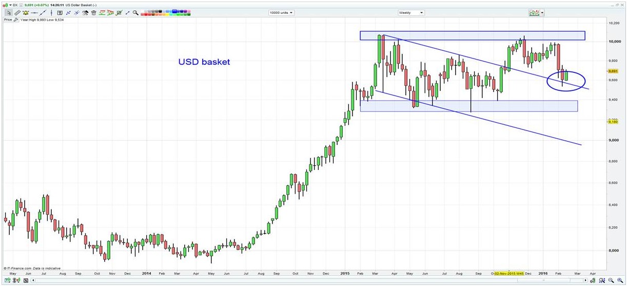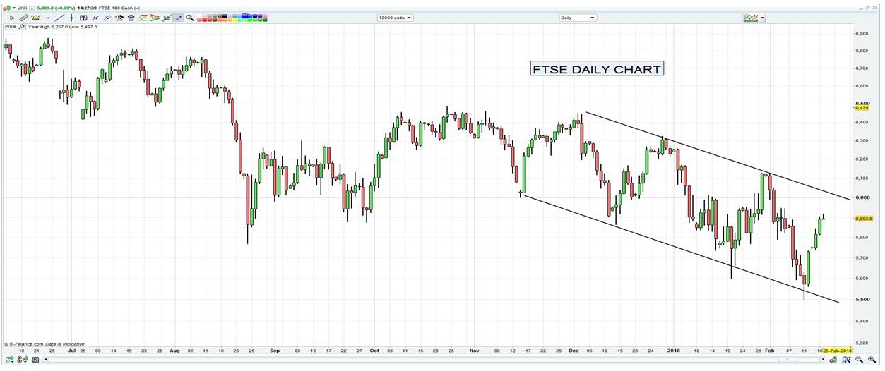 The FTSE is back testing the 5900 area and is edging back into the top of the channel it has been trading in since November, where a break here would be duly noted. The DAX is also at a key juncture and is testing a range of lows starting in 2014 again. Like the USD, S&P, oil and many other markets, price has corrected somewhat, but it seems to have moved back to levels where ‘the world is about to see a protracted recessions and central banks are powerless to stop it’. We live in interesting times.
