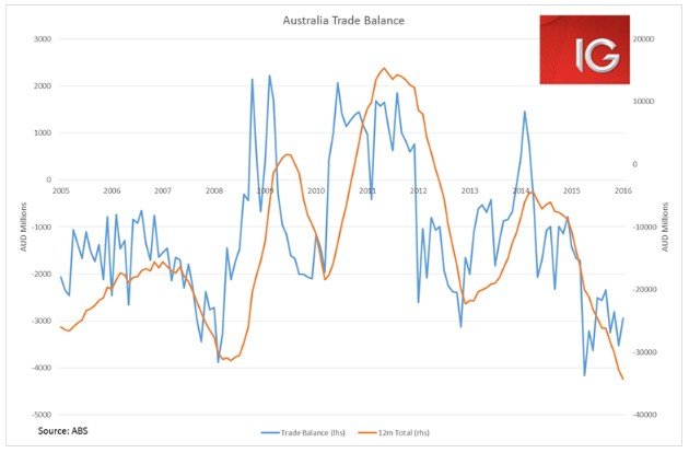 Aussie trade data today does look to be indicating a turning point for the trade deficit as well. This is positive for the Aussie dollar and supports the RBA’s reluctance to cut rates any further. We are unlikely to see the trade deficit fall back to AUD 4 billion as it did in April 2015. The trade deficit does look to be steadily improving, with the past couple of months all averaging around the AUD 3 billion level. If this trend persists through the rest of 1Q, net exports contribution should help support GDP for the quarter.