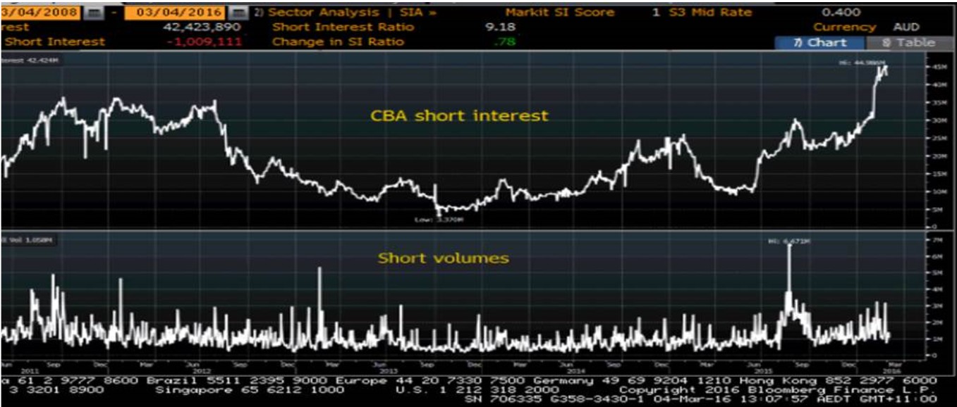 (Short interest in CBA)