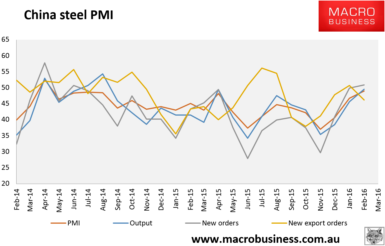 The China steel PMI is out today as well and has also firmed up a little: