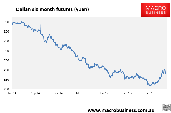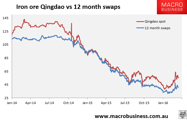 The longer term futures and swaps are all rolling over aggressively as another Chinese casino market fades away. It has to be remembered that Chinese iron ore prices are not set in the short term by supply and demand, but the twin fairies of sentiment and government fenagling.