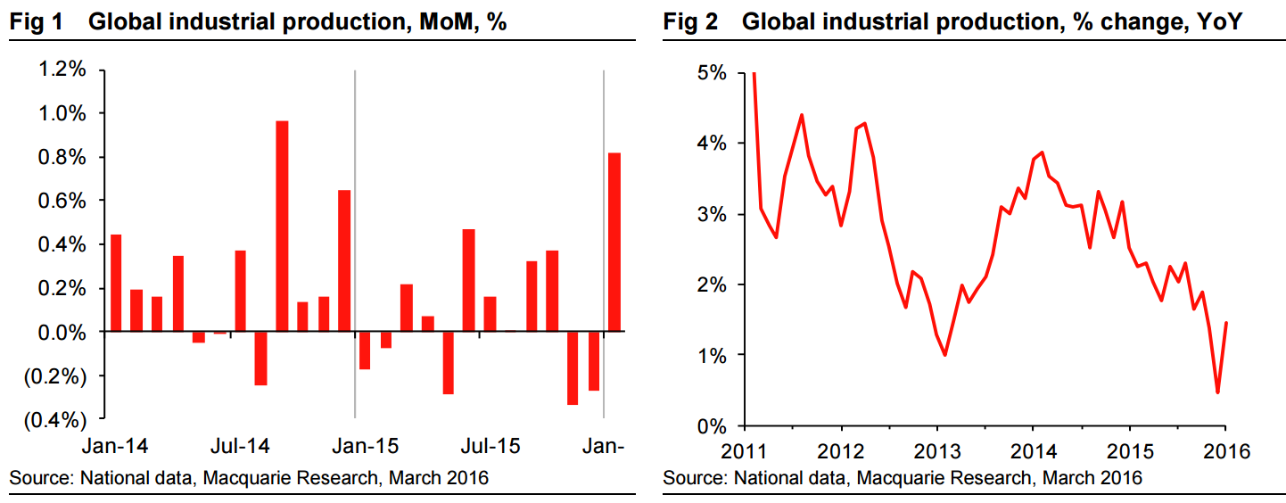 The world’s mines, utilities and factories increased their production by more in January 2016 than over the whole of 2015. This is good news for metals demand, though other data suggests one should remain cautious on the outlook.
