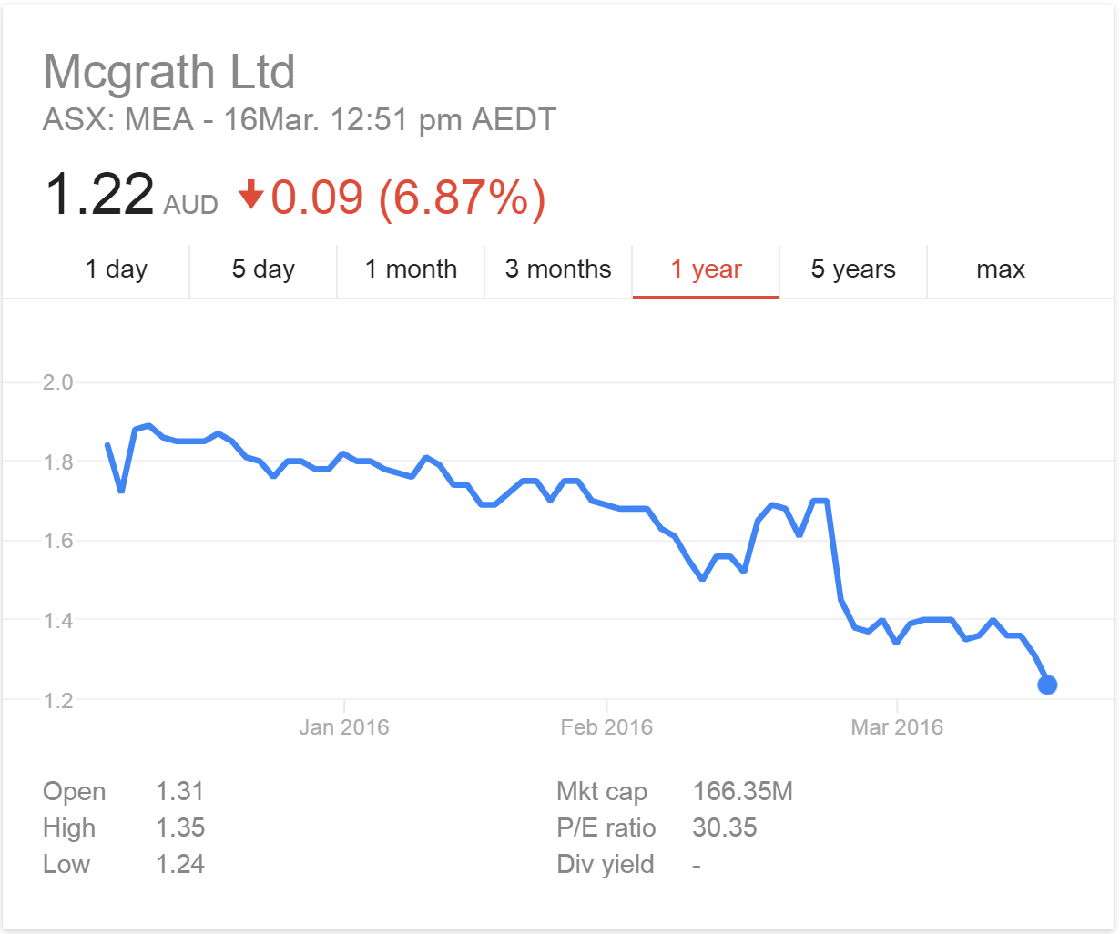 Because the McGrath share price is in free fall: