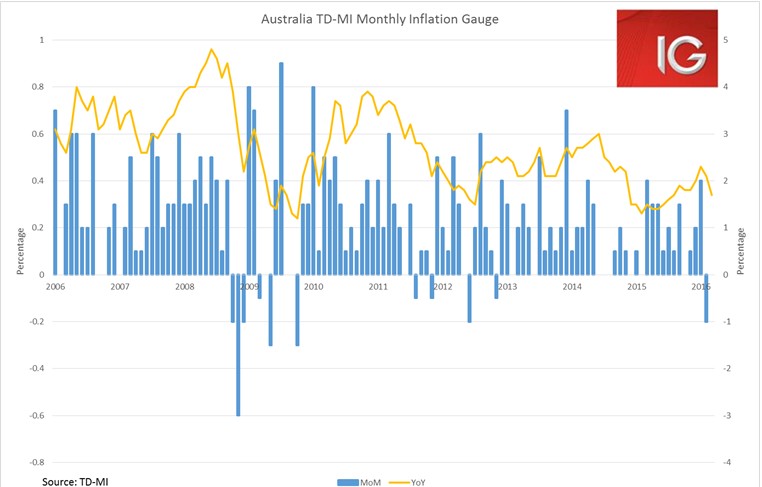 RBA in April: “Inflation is quite low. Recent information has confirmed that growth in labour costs remains quite subdued. Given this, and with inflation also restrained elsewhere in the world, inflation in Australia is likely to remain low over the next year or two.”