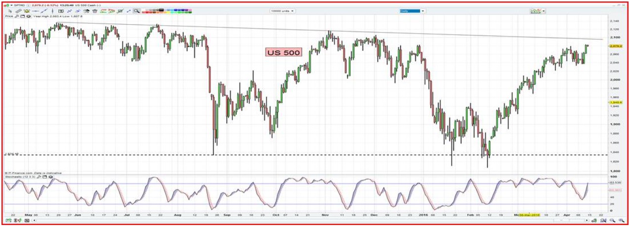 There is an air of disbelief from all parts of the market. Many are having to remind themselves that the S&P 500 and Dow Jones are just 2.4% from taking out the 19 May 2015 all-time high. It just doesn’t feel right, but I was always taught that an asset at all-time highs, or even 52-week highs, is outright bullish and should be traded as such – but no one believes we are here. So many in the market are clinging to the Q1 macro concerns (China CNY devaluation, low oil, low growth/recession, NIRP concerns and deflation fears) that they have missed the move higher. Depending on if one has to benchmark themselves to an index determines if they are now chasing this move higher. While structurally bearish, how do you justify to clients you are down 5 to 10% (perhaps more) when the S&P 500 is now positive for the year? While trend followers have been in the market for a while, investment managers have to be involved regardless of how much they hate buying.