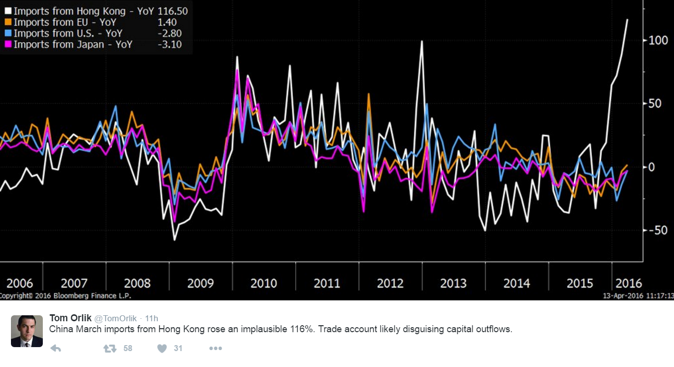Yesterday’s Chinese trade data contined this rather amusing chart, from Tom Orlick at Bloomie: