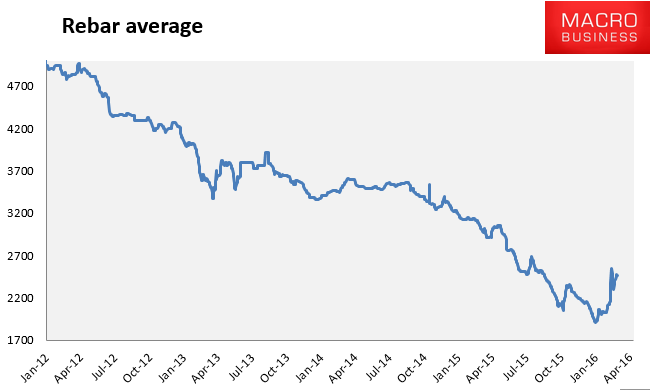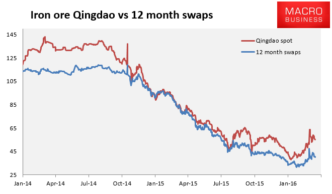 The see-saw that characterises price action in the iron ore complex still has further to run, now down 16% after a near 25% surge in the start of the year. McKinsey and Co are calling for a fall down to $45USD a metric ton. Text from AFR via Bloomberg: