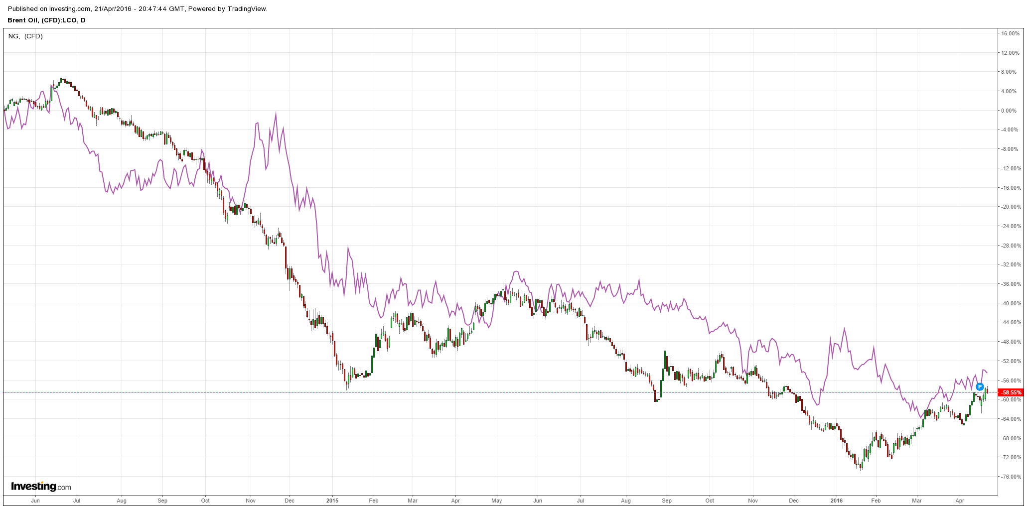 The Brent oil fell 2% to $44.72 last night. Henry Hub joined at $2.06mmBtu: