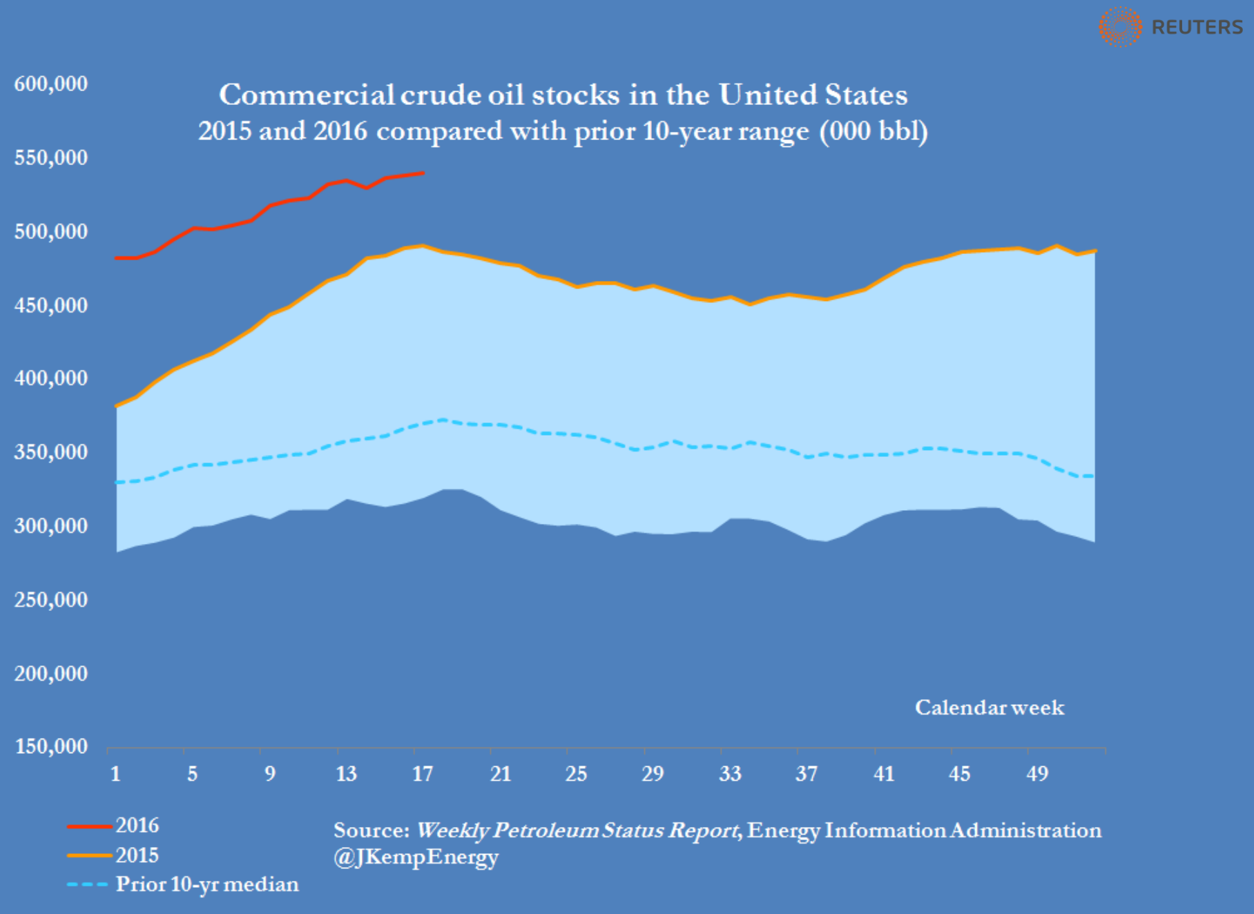 The news flow was mixed but it does not matter. Weekly DOE numbers showed more US inventory build, from John Kemp: