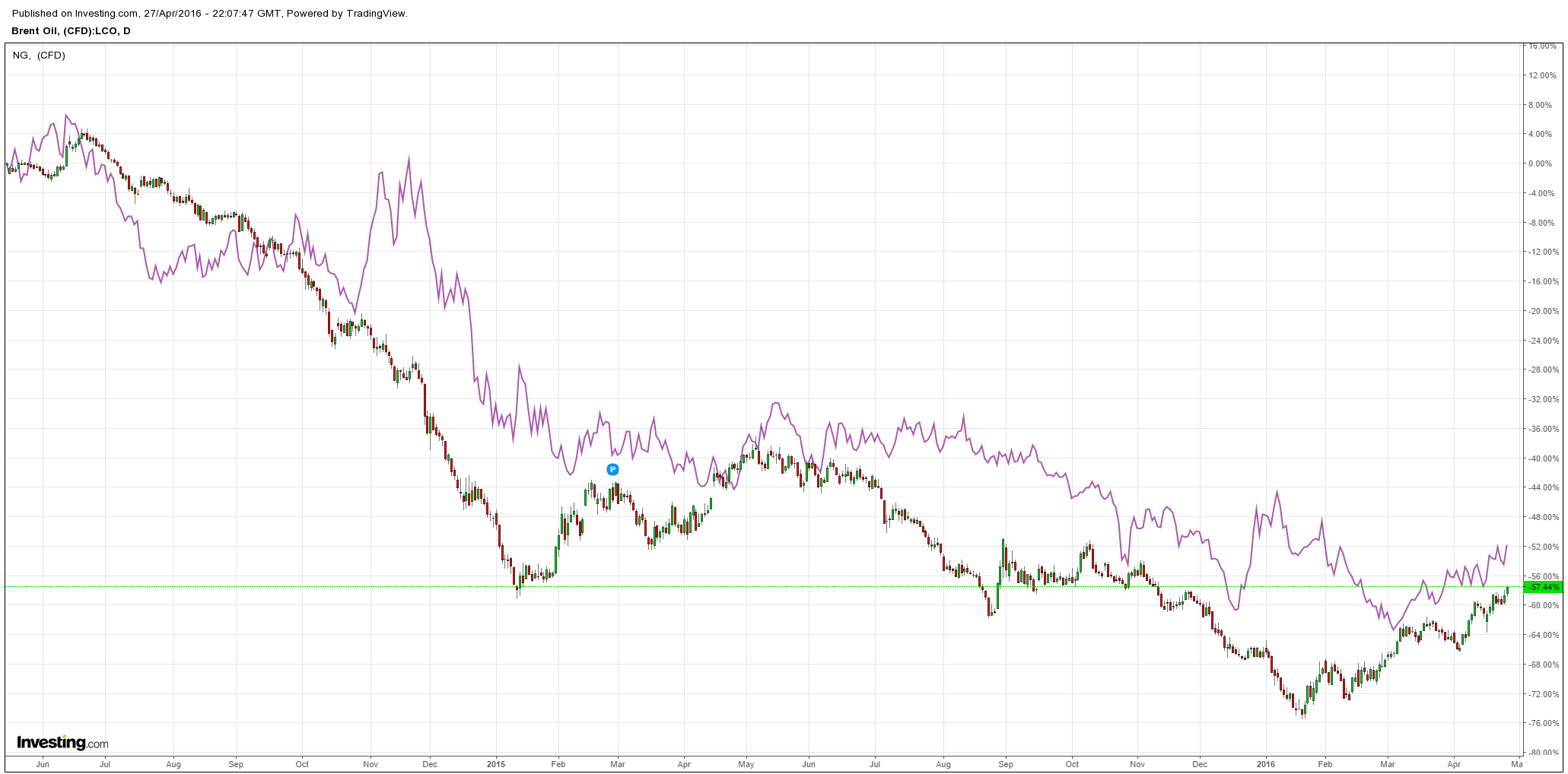 The Brent oil price is unstoppable at the moment up strongly again to $47. Henry Hub gas is being dragged along at $2.15mmBtu:
