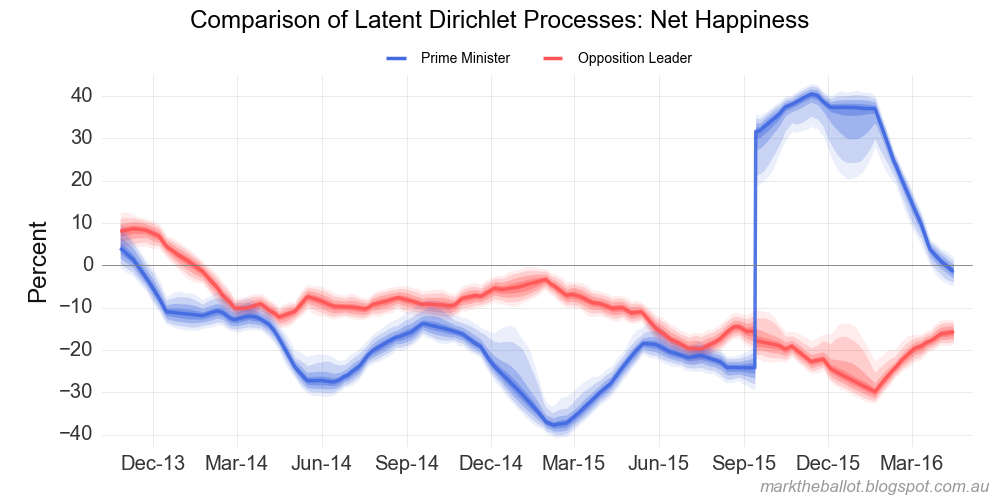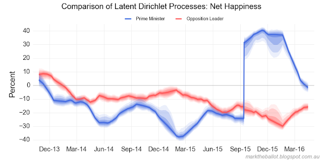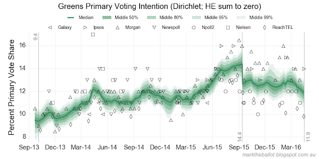 As usual, please note that these models embody a number of assumptions and methodological issues which need to be considered when interpreting the model output. For more information look here.Turning to the primary vote data.