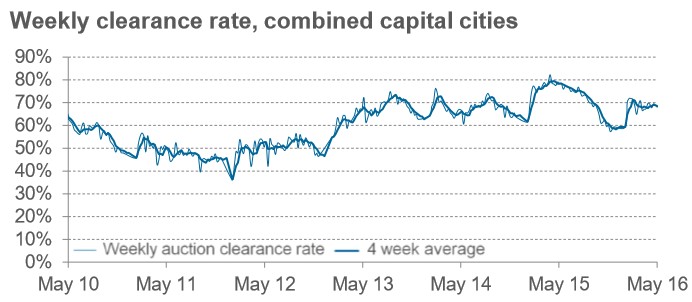 The preliminary national auction clearance rate was 68.0% this week, down from the 70.0% clearance rate recorded last weekend, according to Core Logic-RP Data: