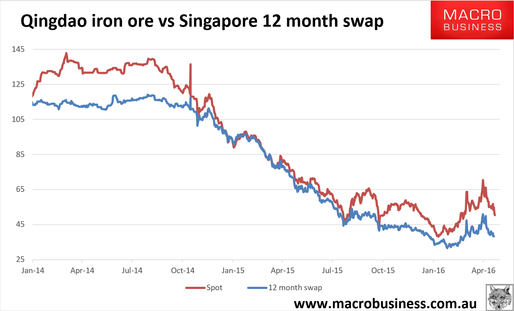 Iron ore price charts for May 25, 2016: