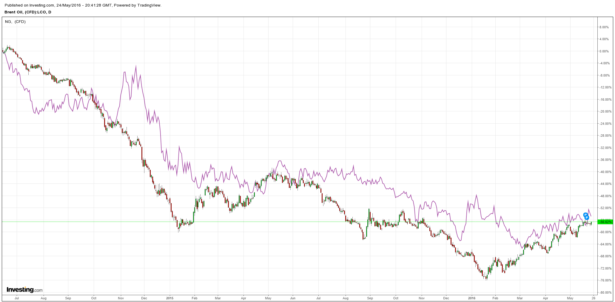 The Brent oil price rebounded last night to $49.05 as Henry Hub tumbled back to $2.14:
