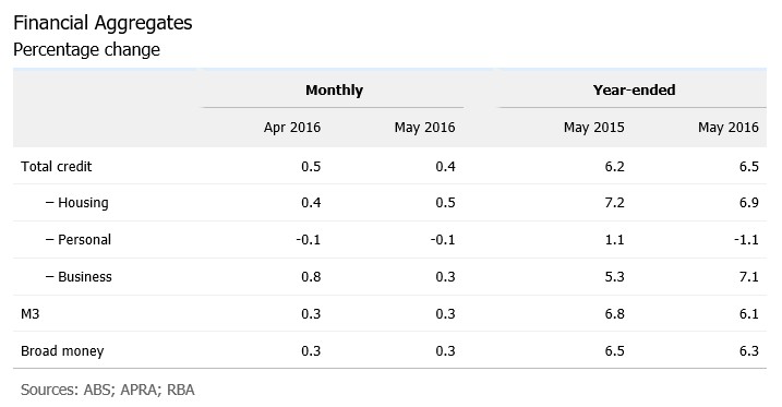 The Reserve Bank of Australia (RBA) has released its private sector credit aggregates data for the month of May: