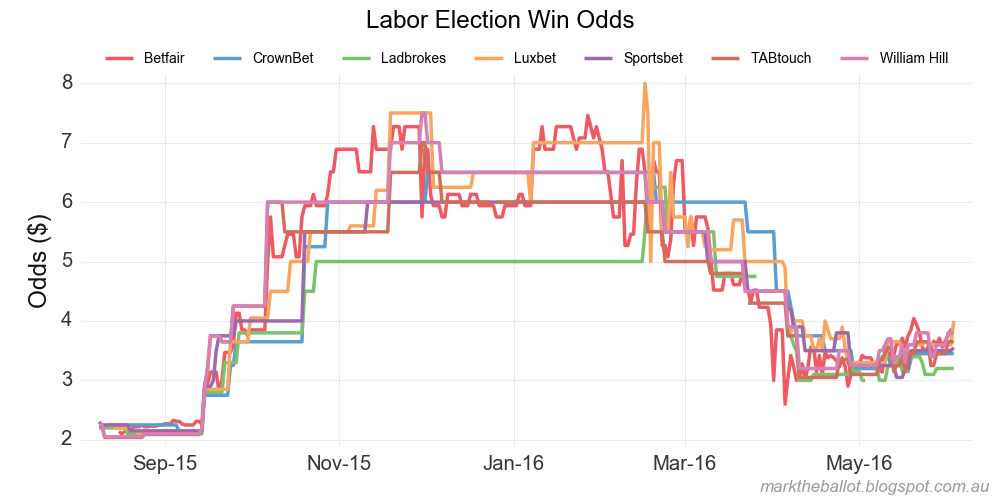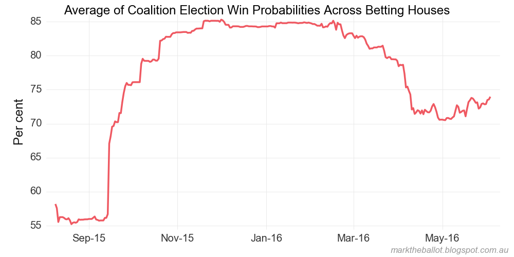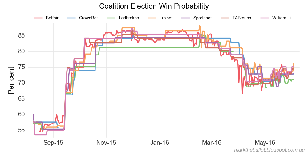 Betting markets are going the other way on the odds and probability of a Coalition win.