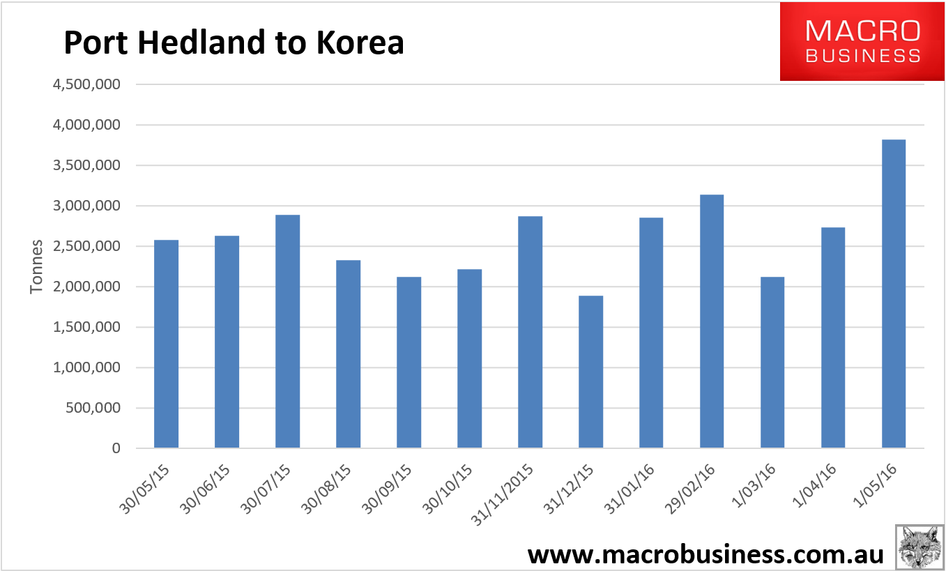 Port Hedland May stats are out and it shipped the second highest level of dirt on record at 39.37mt.