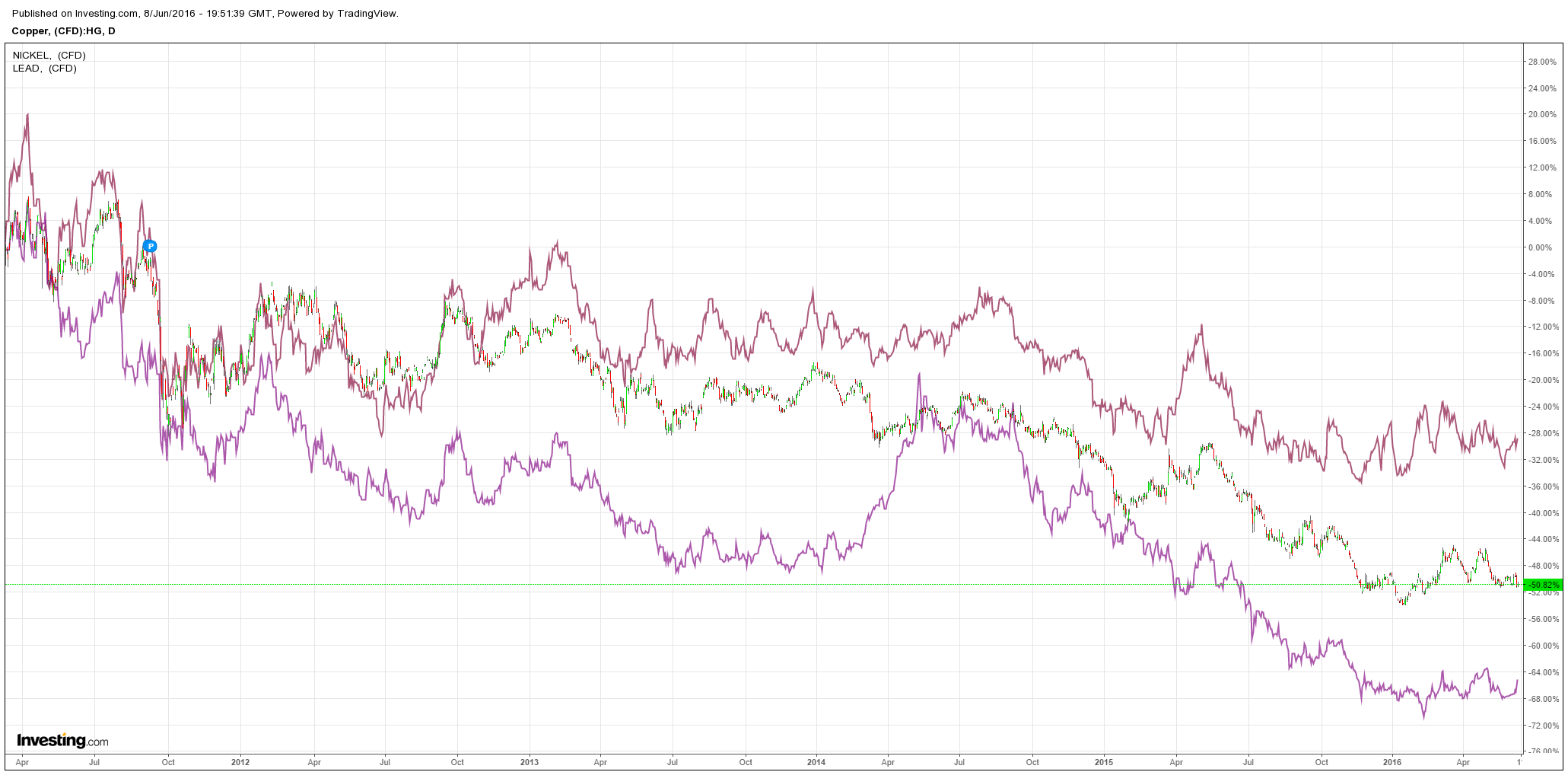 Again, base metals struggled to follow: