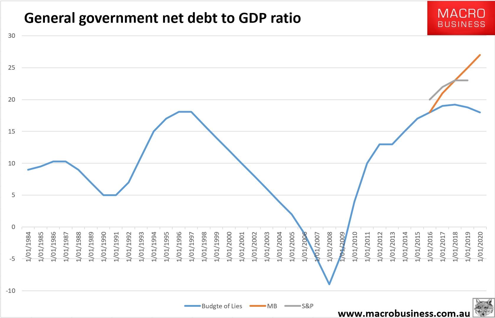 There is a one-in-three chance that we could lower the rating within the next two years if we believe that parliament is unlikely to legislate savings or revenue measures sufficient for the general government sector budget deficit to narrow materially and to be in a balanced position by the early 2020s. We will continue to monitor, over the next six to 12 months, the success or otherwise of the new government’s ability to pass revenue and expenditure measures through both houses of parliament.