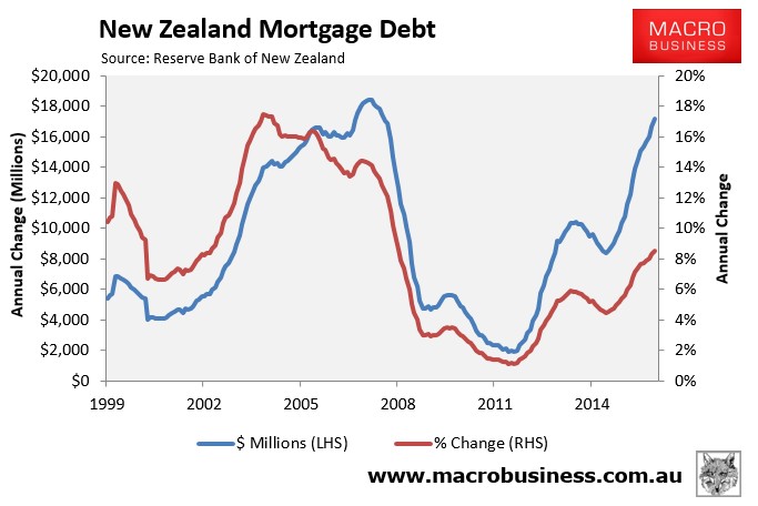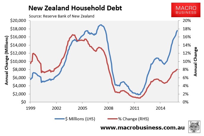 Yesterday, the RBNZ released its monthly credit aggregates data, which showed that household borrowing hit an annual growth rate of 8.1% in May – the highest level since June 2008 just prior to the onset of the Global Financial Crisis (GFC):