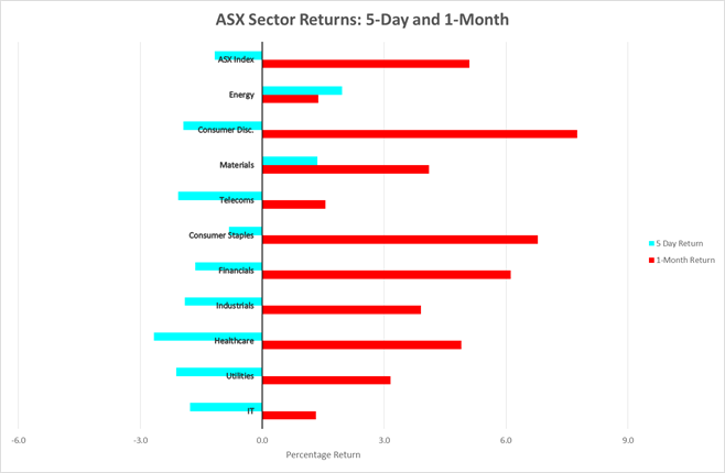 Only the energy and materials sectors ended in positive territory for the week. The spot oil price looks like it may have corrected last week after seeing a 20% decline from its recent highs. With the outlook improving for the spot oil price, investors were keen to jump back in and start picking up energy names again.
