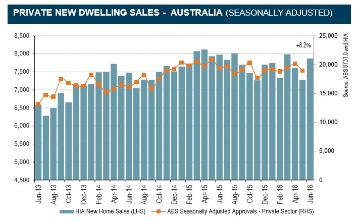 “The overall trend is still one of modest decline for New Home Sales, but a bounce of 8.2 per cent in June 2016 highlights the resilience of the national new home building sector,” commented HIA Chief Economist, Dr Harley Dale.
