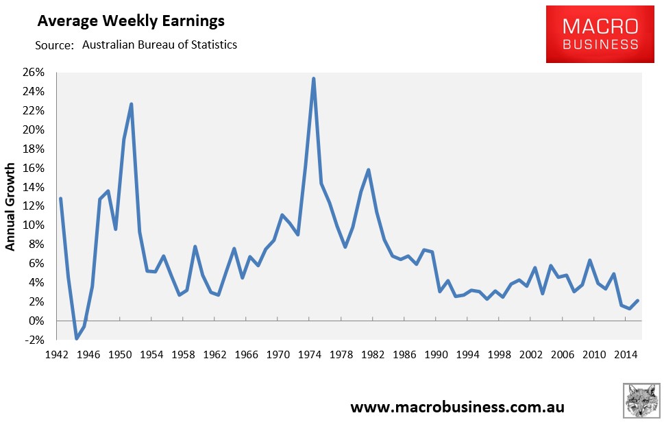 Average weekly earnings are growing at close to the lowest rates since the Second World War, which means our record high debt loads are not being ‘inflated away’: