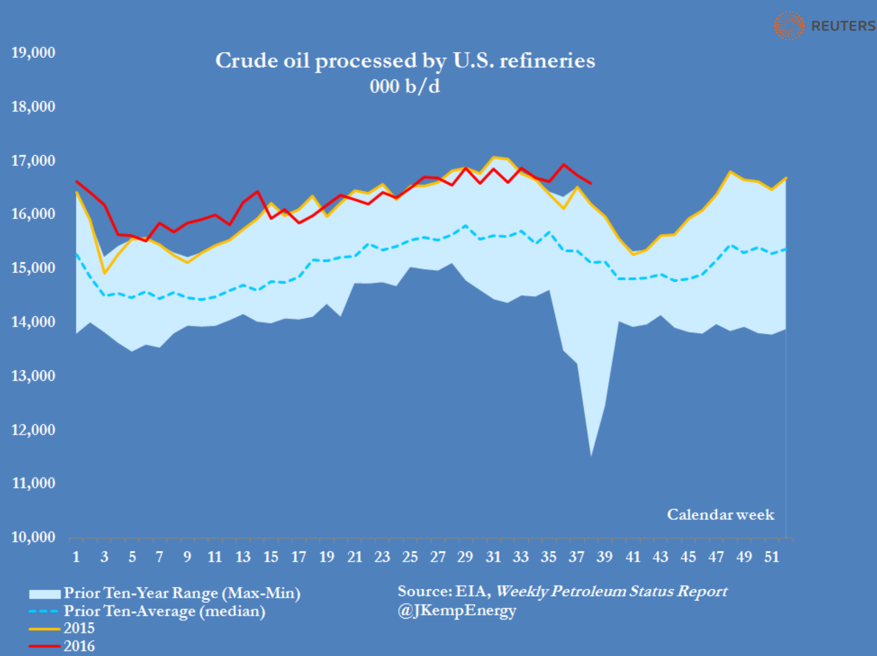 However, within fundamentals things continue to deteriorate. US DOE data was somewhat bullish as crude stock fell heavily, from John Kemp:
