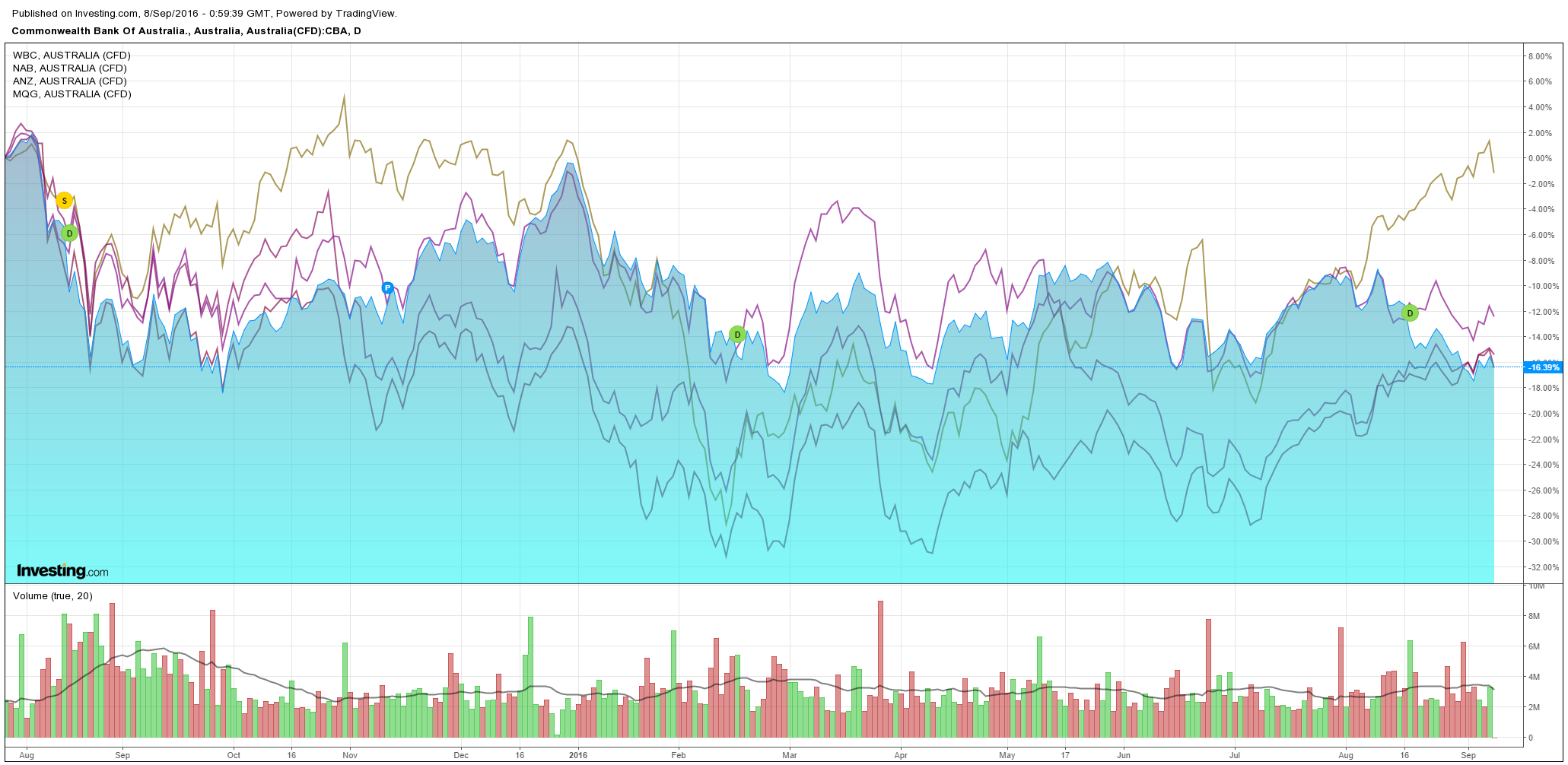 Banks are off too with CBA -1.3%, WBC -2%, ANZ -1.8% and NAB -0.9%: