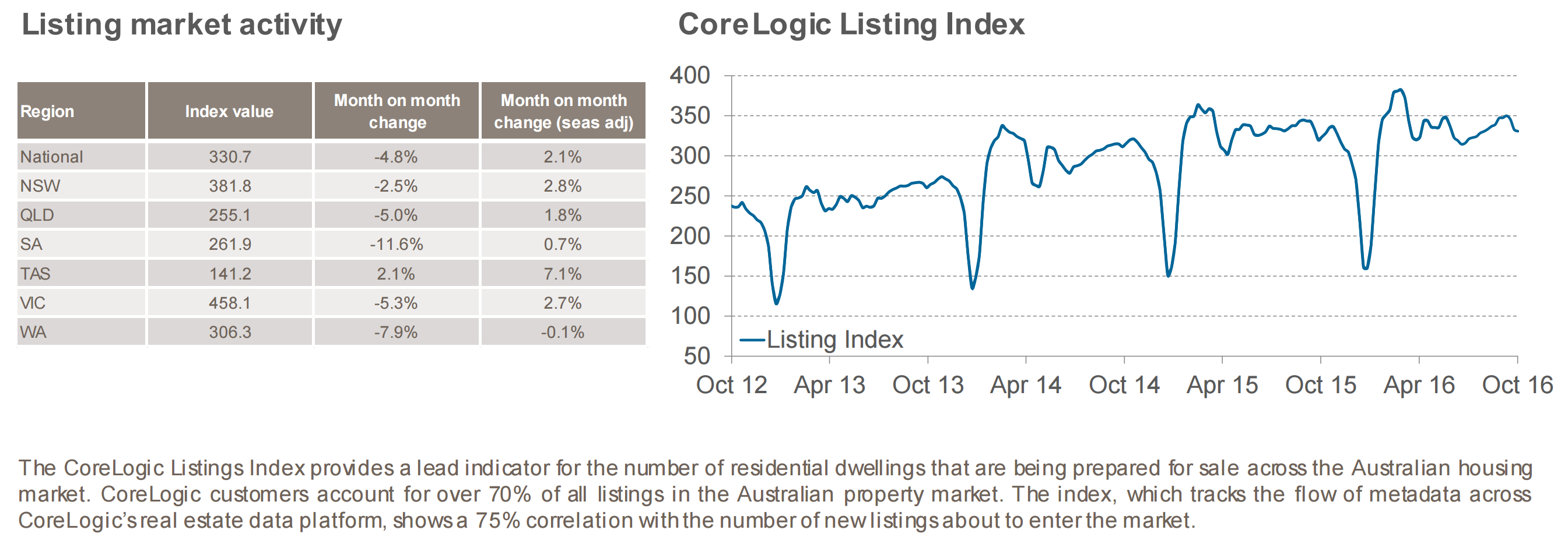 Take a close look at the top chart and you’ll see that mortgage credit creation is now materially below the same period in 2014. Listings are decent if not booming.