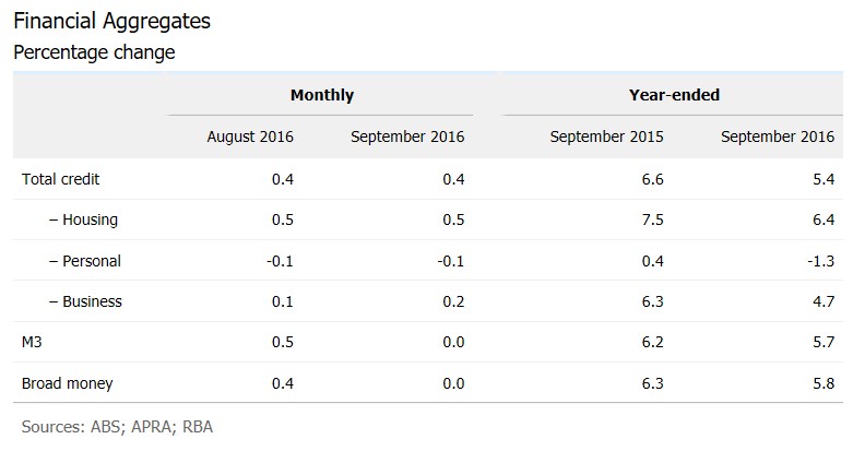 The Reserve Bank of Australia (RBA) has released its private sector credit aggregates data for the month of September: