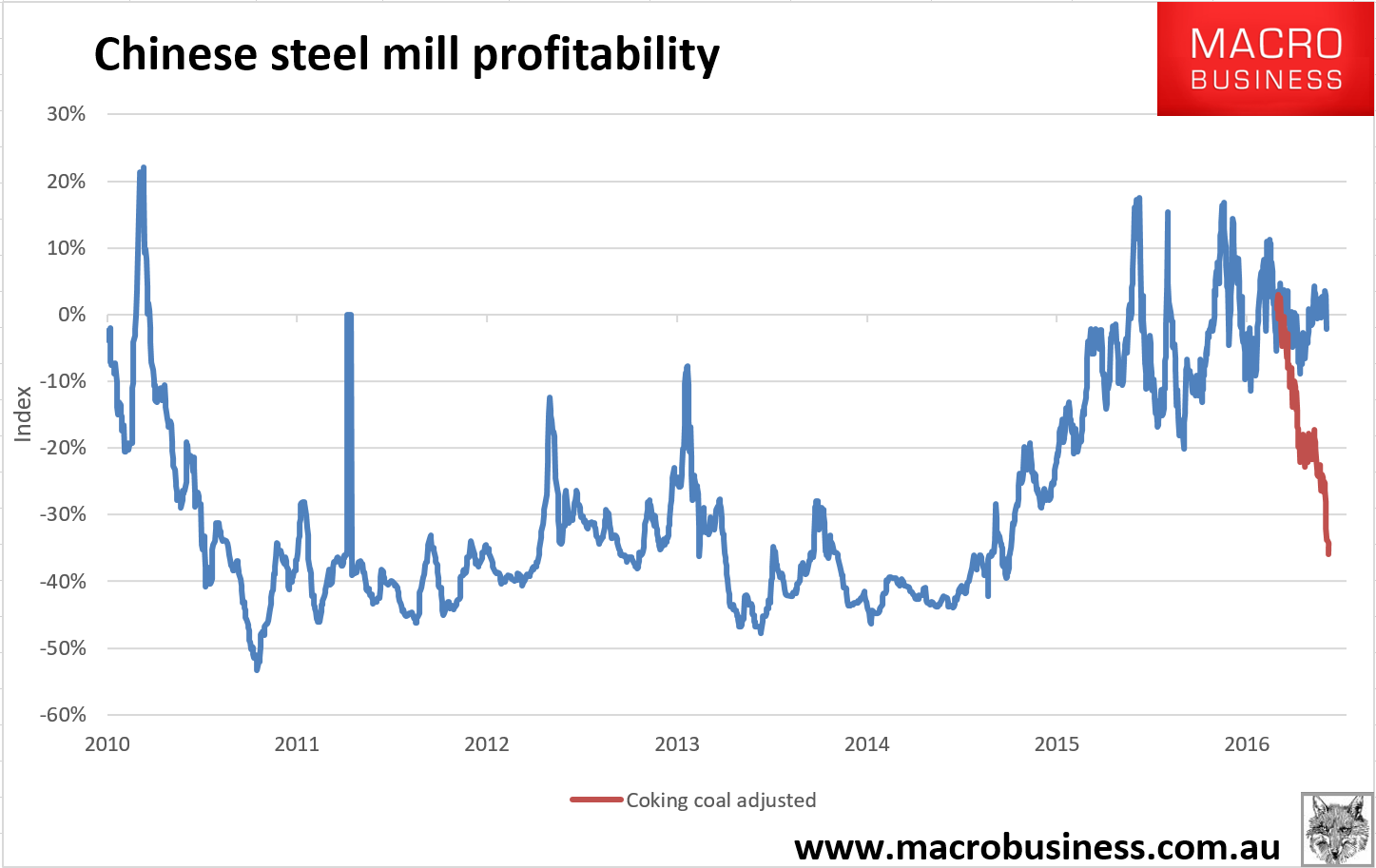 Boom! Yesterday’s robust China PMIs have sent the bulk boomlet nuts again. Tianjin benchmark rose another 0.9% to $64.40, paper disappointed and eased overnight. Even steel found some more pricing power. Thermal coal pinned its ears back. Coking futures took off. Steel mill profitability hit new lows but right now it does not matter.