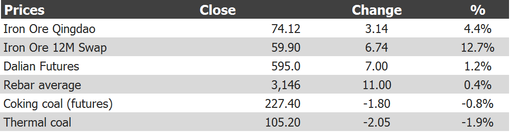 Iron ore charts for November 19, 2016: