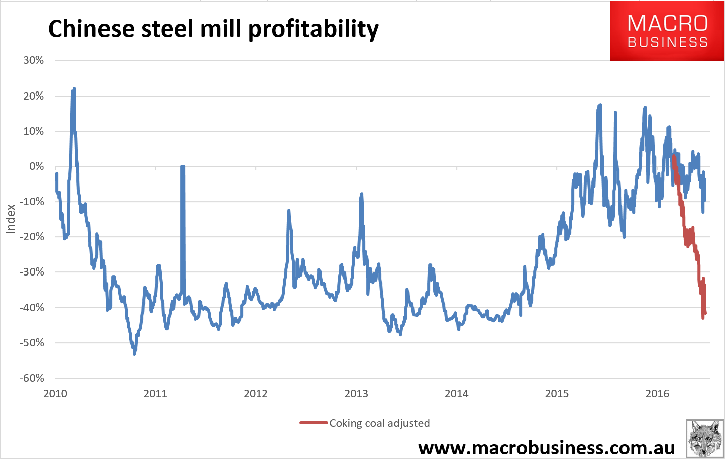 Tianjin spot rose 2.7% to $76.90. Paper rose again overnight but is now clearly outpacing physical suggesting the rally is in trouble again. Coking coal futures are stalled. Thermal bounced. Steel is struggling and mill margins are right on new lows. In short, the rally looks tired and a double top has to be a possibility.