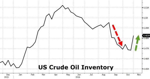 The trigger was the largest inventory build in 34 years in US crude (charts from ZH):