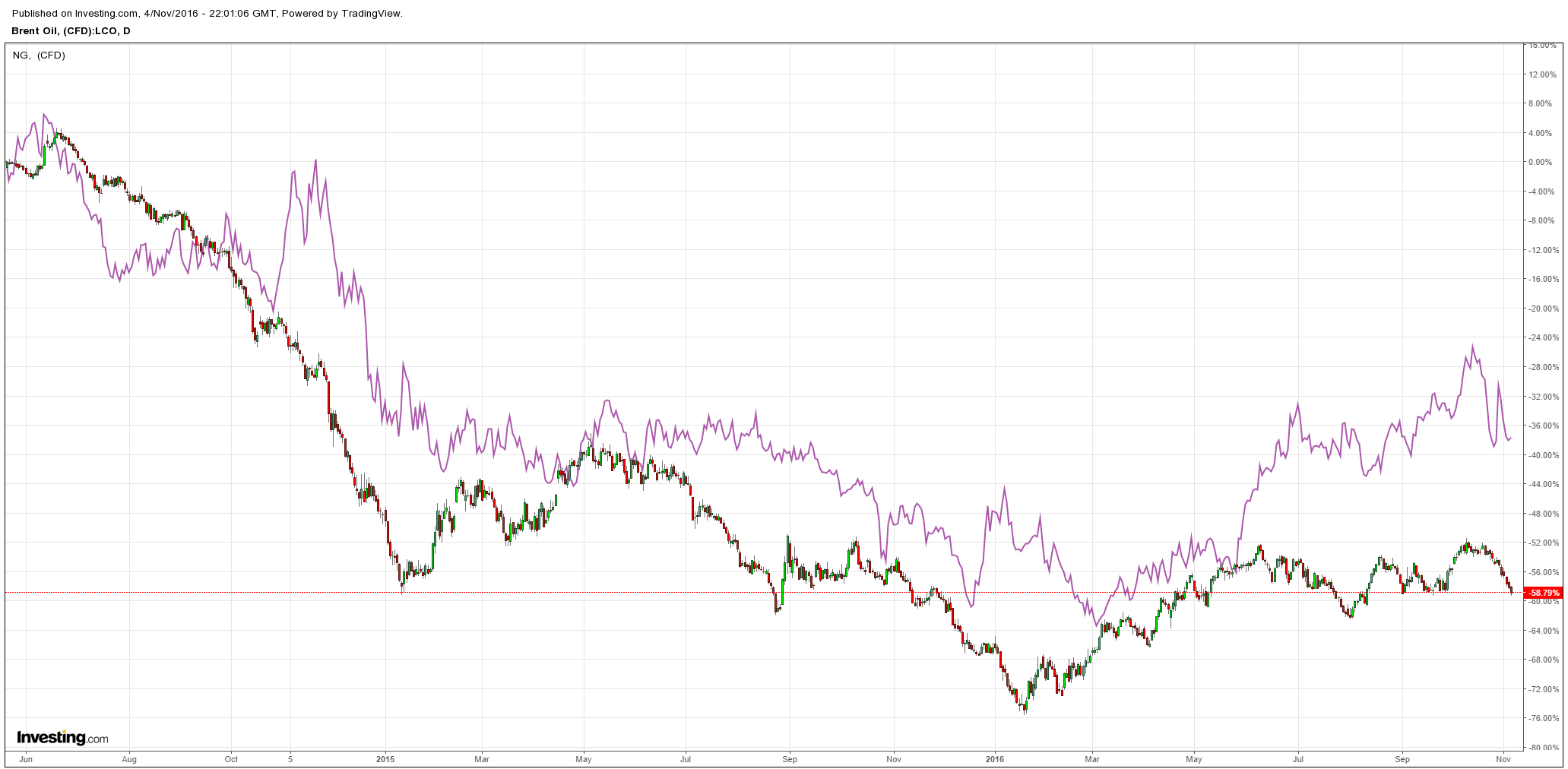 The Brent oil price was hammered again Friday night to $45.56 and right on crucial support now. Henry Hub held on: