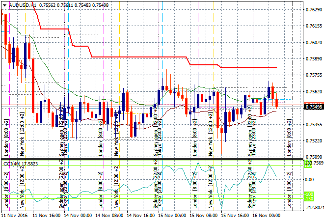 The Aussie dollar is again going nowhere, with all the action in Yen, still stuck at around 75.50 against USD. Again, just watch the ratcheting ATR resistance line above for signs of a reversal: