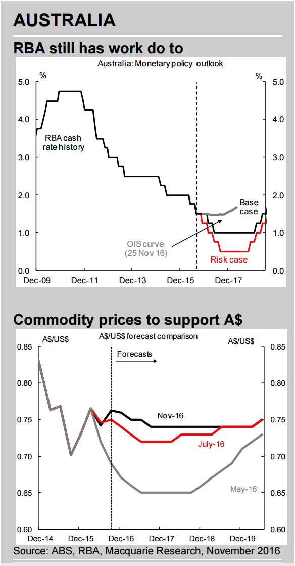Beyond 2017 our read on the Australian macro picture is a favourable one. We are forecasting a pickup in GDP growth to 2.8% in 2018, and 3.1% in 2019. Getting there is the challenge, as it has been for the past few years.