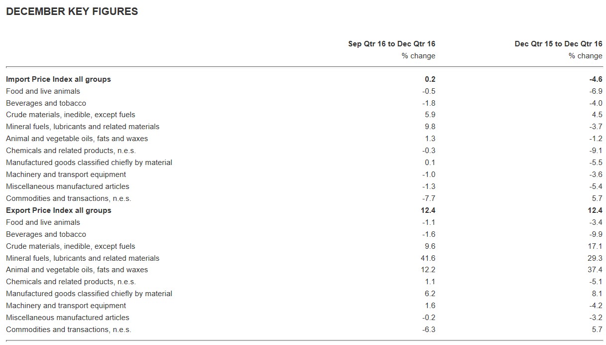 The Australian Bureau of Statistics (ABS) has released export and import prices for the December quarter, which portends another much-needed increase in Australia’s terms-of-trade when the national accounts are released in early March.