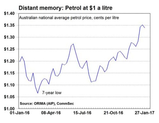 From June to December last year, petrol averaged around $1.20 a litre. Following the decision by OPEC oil nations to trim production, the new ‘normal’ for petrol is around $1.30-$1.35 a litre. The change has added around $18 to the monthly spending for Australian households. So provided OPEC nations maintain the discipline on
