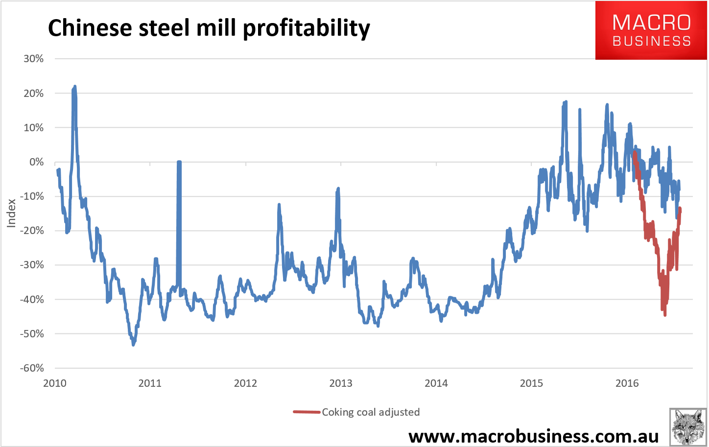 Spot fell. Paper rebounded Friday night. Coking futures too. Thermal wants to go lower. Port stocks rose another 700k tonnes last week to surpass 130mt for the first time. Chinese steel mill margins are robust again as steel rises and coking coal collapses.