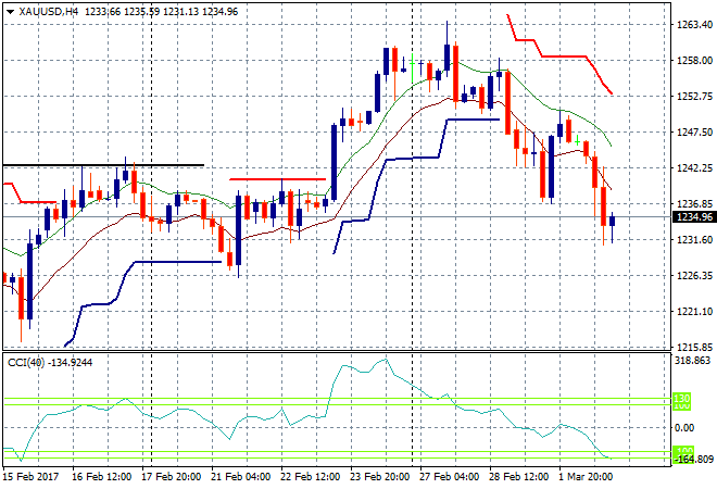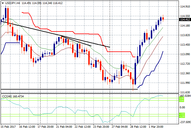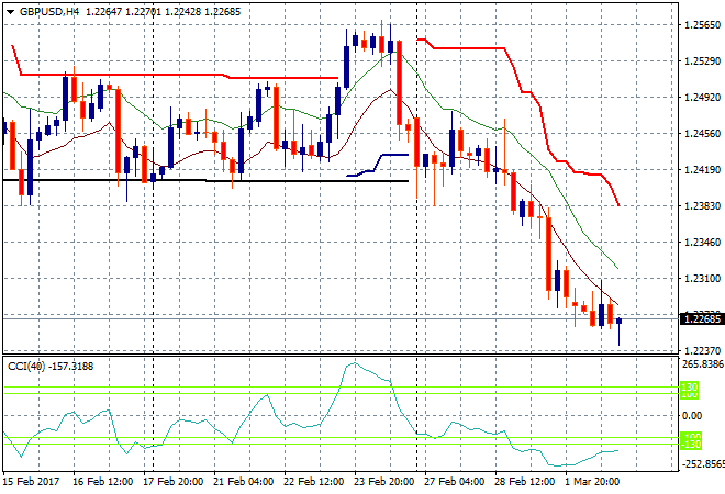 On to currencies, where all the action was overnight! The USD is killing everything else as hot money moves into the higher rate possibilities that continue to firm. Pound Sterling continues its breakdown remaining below the 1.23 handle overnight and to the early February low and support on the daily chart. The key area to watch is at 1.2240, but this is looking a little overdone here: