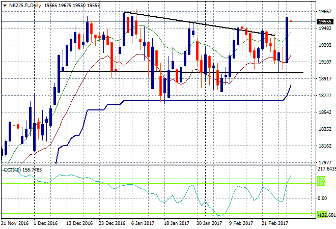 Looking at Asia’s session yesterday, where the Shanghai Composite closed down 0.5%, taking back yesterdays gains to be at 3230 points. The 2016 high at 3300 points may be a bridge too far for this very speculative market with no new daily high since last week. Watch the low moving average here for a proper breakdown: