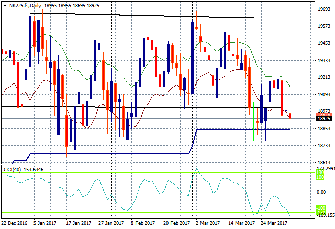 Yesterday, Japanese stocks were pushed down by a resurgent Yen during the Asian session. The Nikkei closed down nearly 1% lower to 18800 points falling through its key support level on the daily chart. Futures are suggesting a modest open this morning as Yen was sold off slightly against USD overnight, but its nowhere near out of the woods here: