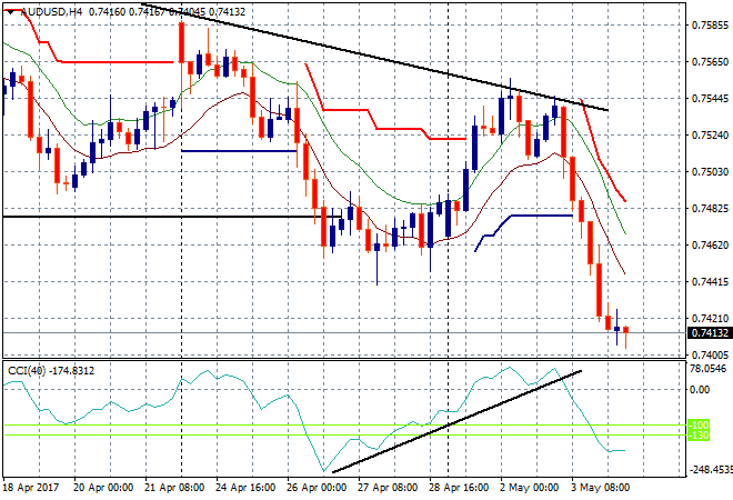 The Aussie dollar remains poised here, possibly reading to breakdown again this time through the 74 handle after last night’s shocker. Price deceleration is almost complete so a risk on mood in commodities in London could see a swing long up to the low moving average at 74.40: