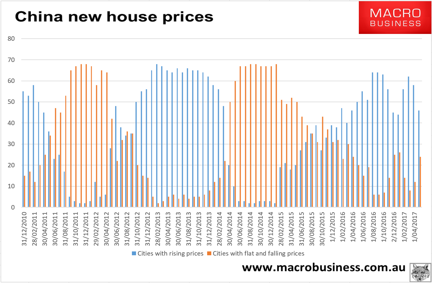 The net number of flat or falling markets rose to 24 of 70: