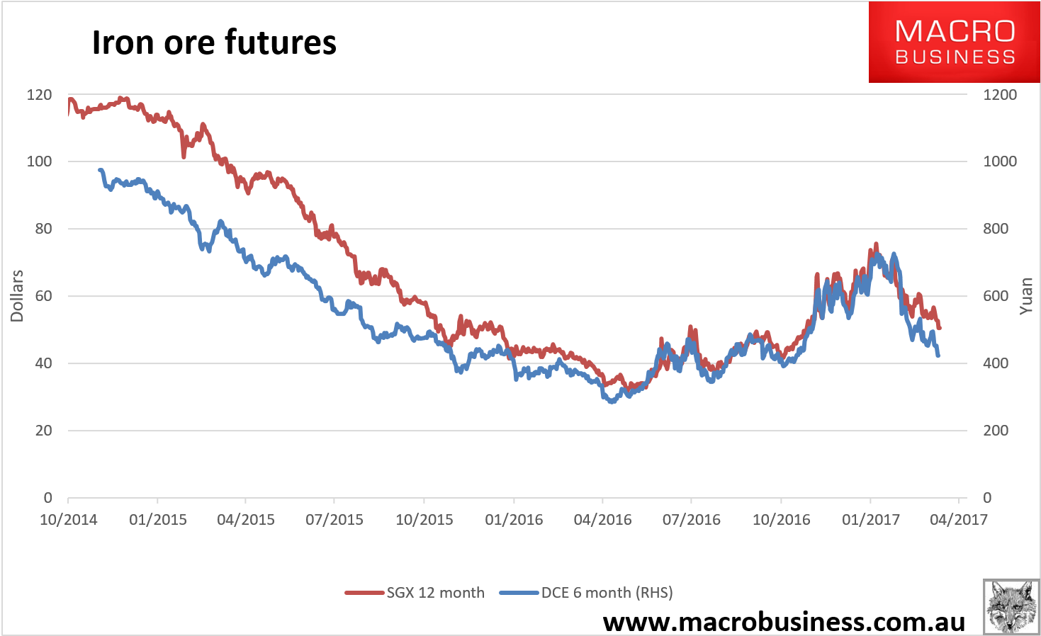 Iron ore price charts for June 1, 2017:
