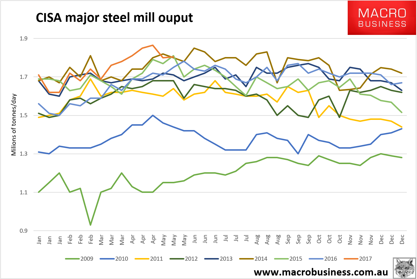 CISA release mid-May fast data for steel output and it rose a touch to 1.805mt: