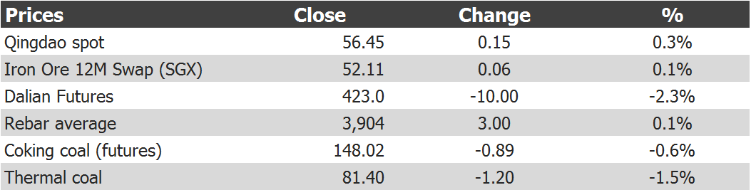 Tianjin spot fell 30 cents to $54.40. Paper was hit overnight. If that was supposed to be a bear market rally then the market is in deep trouble. Steel stable.