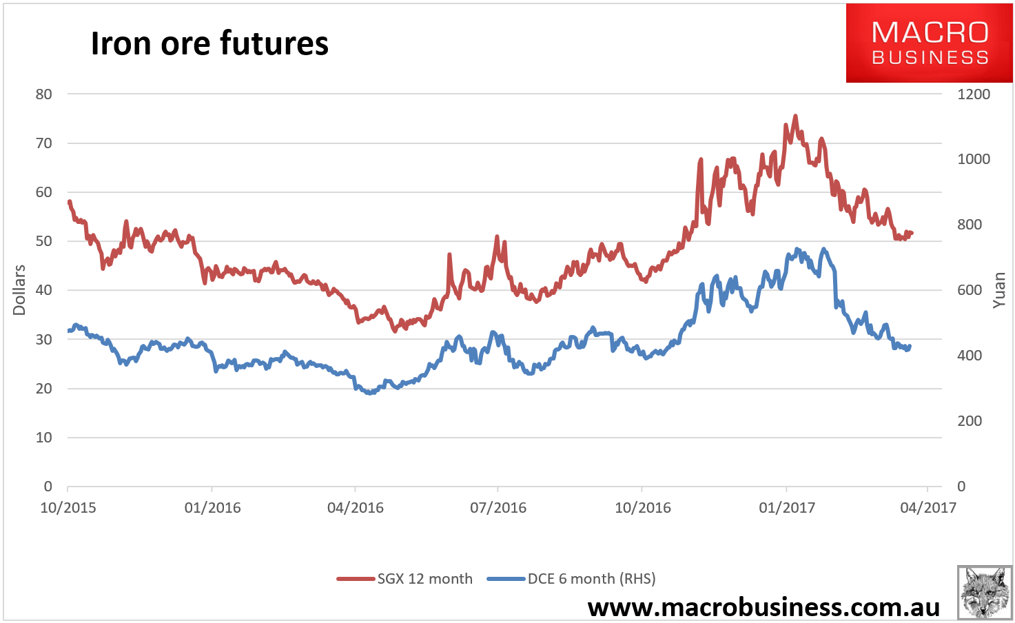 Iron ore price charts for June 15, 2017: